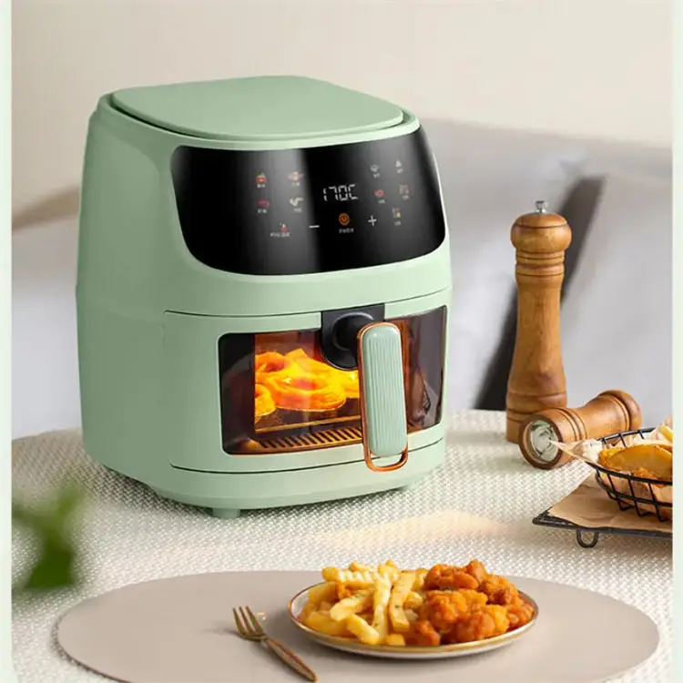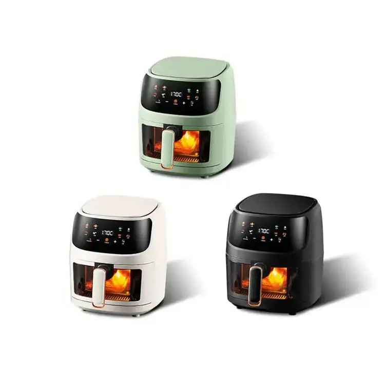 Private Label 6L LCD Display Electric Air Fryer Plastic Square Shape with Observation Window Oil-Free for Household Use